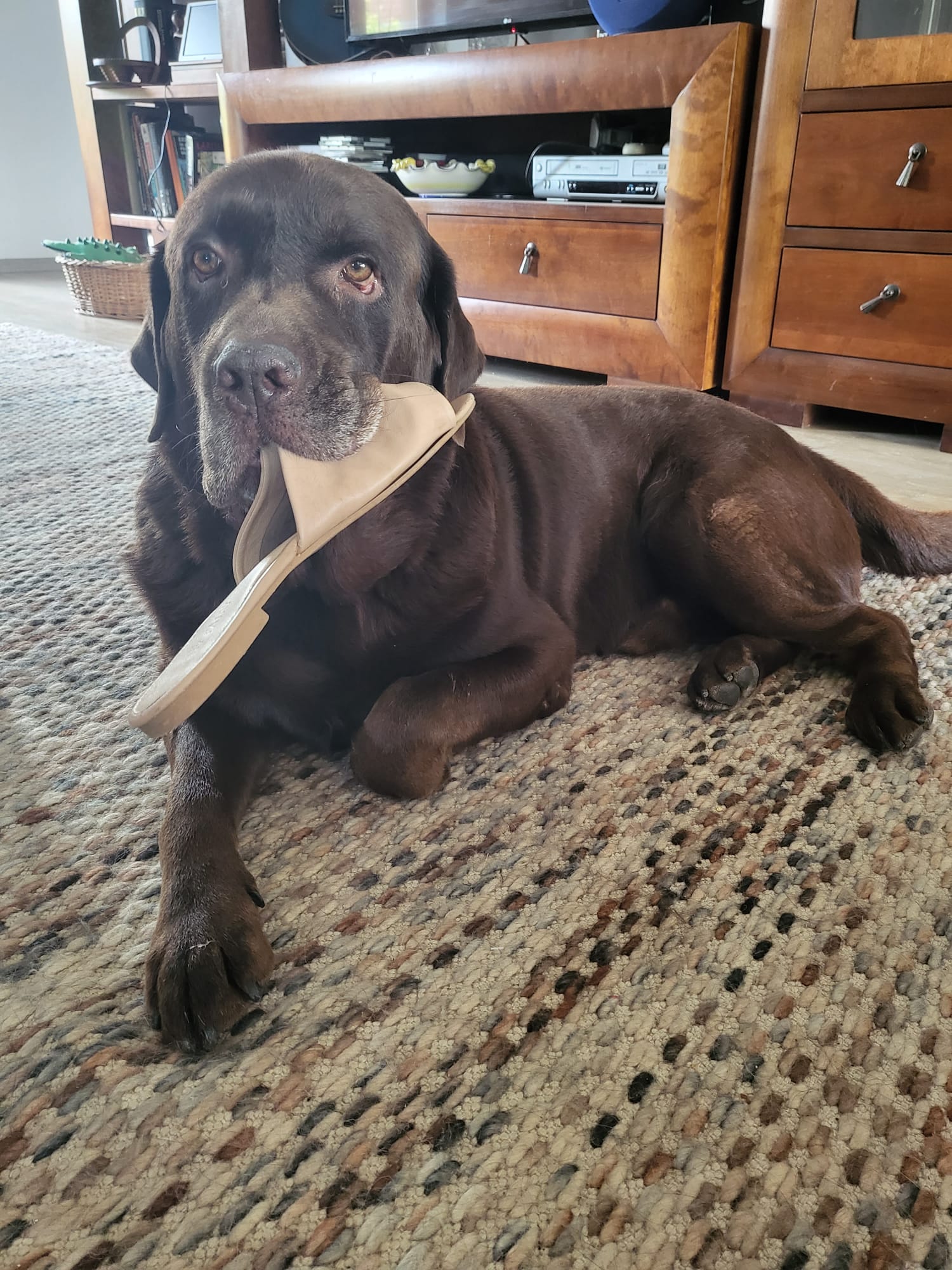 Bruno este cel care ne așteaptă răbdător în fiecare zi. Mai ales acum, că ne-au plecat și copiii de acasă, el le-a luat locul și ne-a ajutat să trecem mai ușor peste această etapă. Dimineața ne anunță subtil cu laba la ușa dormitorului că s-a sculat și vrea afară, iar când vin de la serviciu, mă așteaptă vesel, cu un «cadou» în gură (de obicei un papuc).