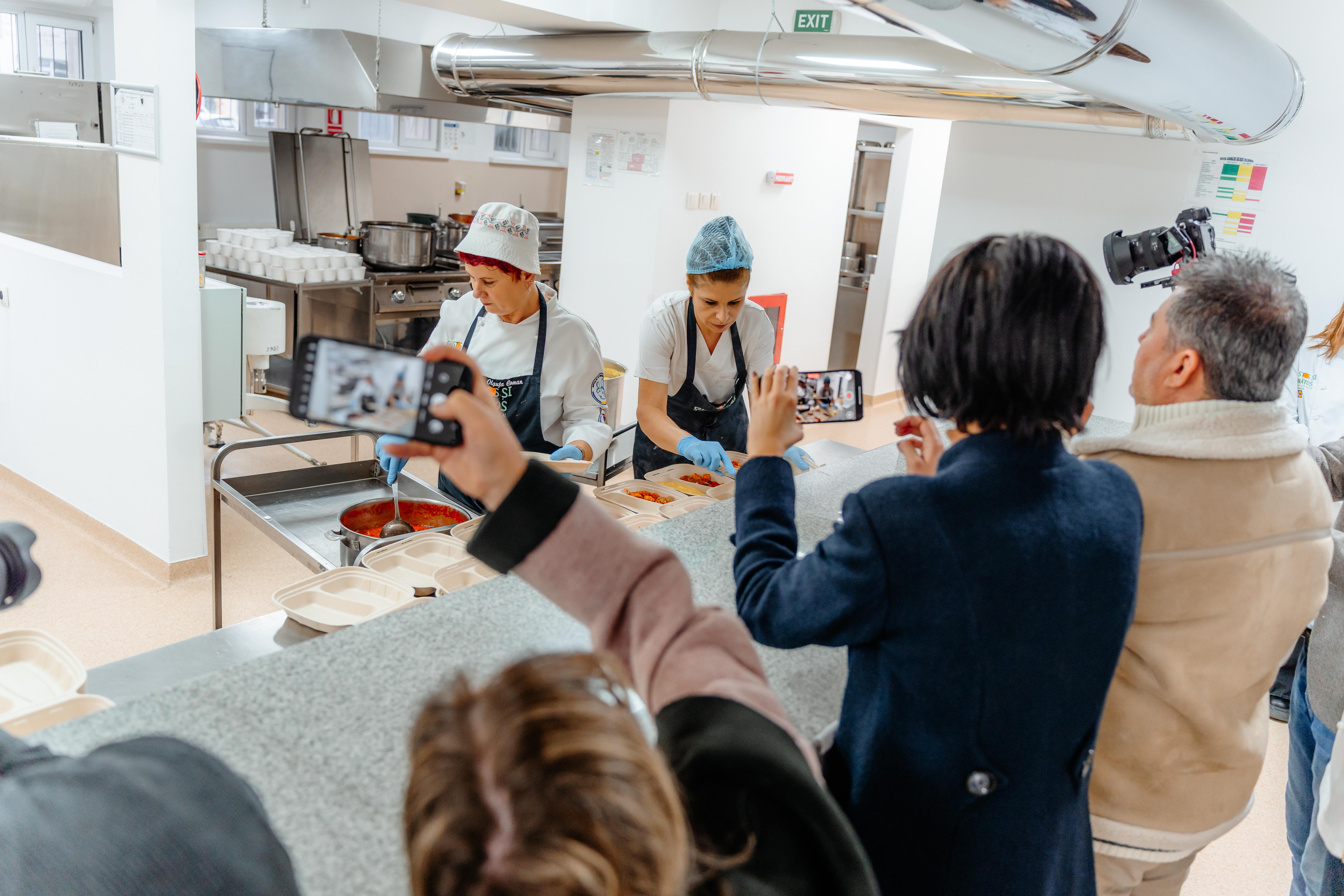 Spațiul alocat blocului alimentar este unul generos. Timp de opt săptămâni, acest spațiu a fost renovat, recompartimentat și igienizat, astfel încât să se poată trece la crearea noului meniu într-un spațiu luminos.