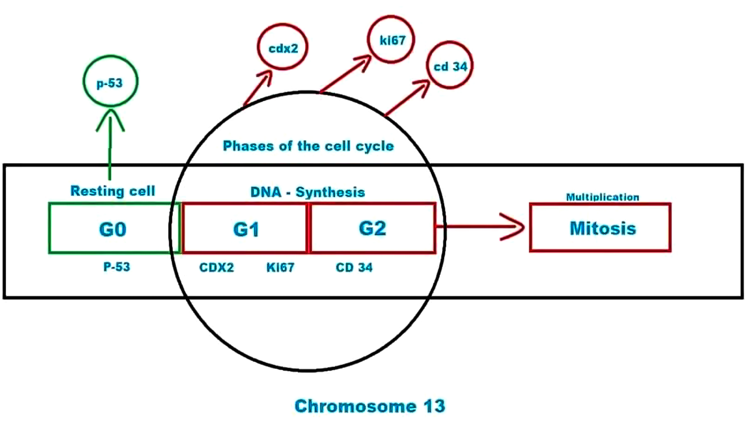 Studii mai recente asupra Ki67 au indicat că aceasta suferă o degradare mediată de proteazom în timpul fazei GI și la ieșirea din ciclul celular. Proteina Ki67 are un timp de înjumătățire de numai 1-1,5 ore. În anafază și telofază are loc o scădere bruscă a nivelurilor Ki67. Nu a existat niciun răspuns patologic în cazurile cu o valoare a indicelui Ki67 <25%.