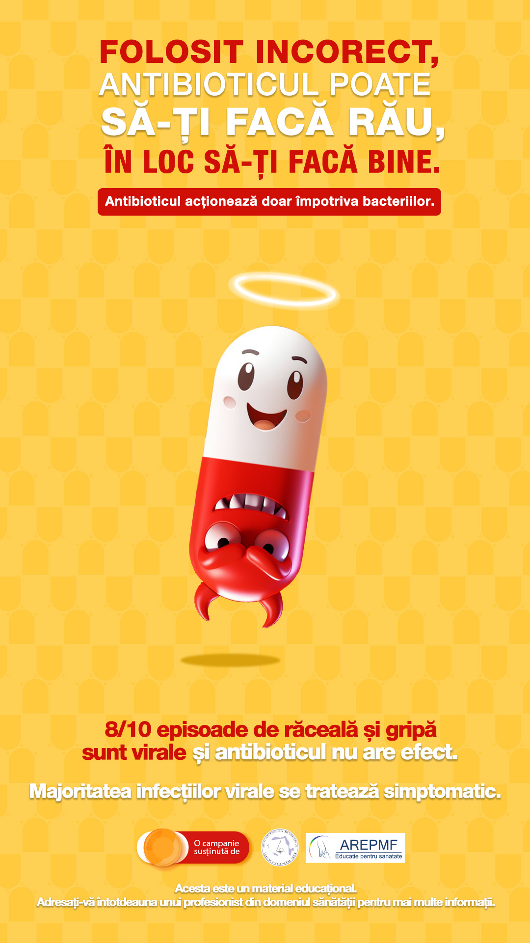 „Îndrumăm pacienții să utilizeze antibioticele doar la recomandarea medicului, să respecte recomandările de tratament (doza, durata și medicamentul prescris) și să contribuie la informarea corectă a celor din jur. Protejând prezentul, asigurăm viitorul”, a spus și dr. Raluca Ghionaru, președinta AREPMF.