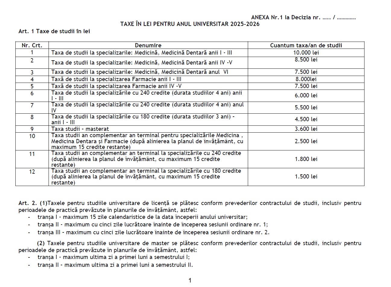 Pentru anul universitar 2025-2026, taxele au fost după cum arată informațiile din tabel:
