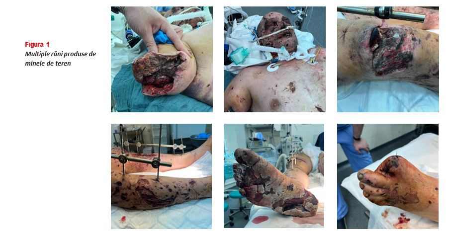 Un moment extrem de emoționant a fost sesiu- nea organizată de delegația medicilor ucraineni. Din păcate, situația deosebit de gravă din țara vecină face ca acești colegi ai noștri să aibă o cazuistică extrem de amplă în tratarea traumatismelor de război și a durerilor consecutive lor. În acest război al erei mo- derne, majoritatea traumatismelor sunt cauzate de drone și de mine de teren, iar rănile produse astfel sunt extrem de complexe. O treime dintre pacienți au politraumatisme pe multiple suprafețe are corpului (Figura 1).