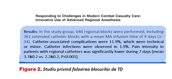 • Perioada inițială, a plăgilor acute: dureri nociceptive și câteo- dată dureri neuropate – tehnici de ALR, blocuri de TD, epidu- rale etc. (Figura 2).
