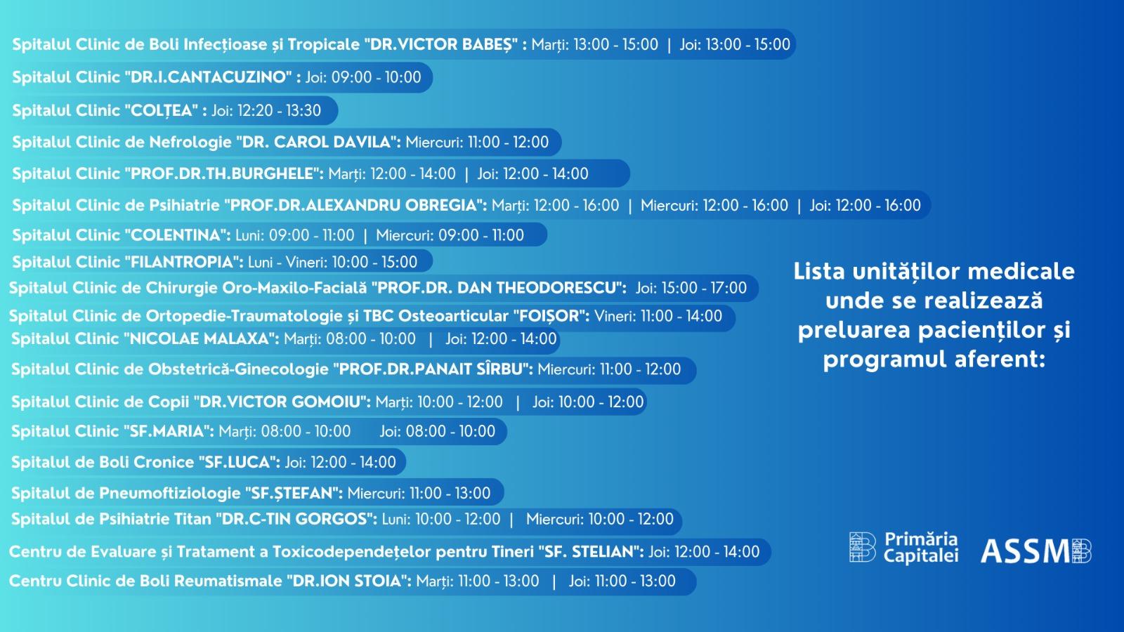 Spitalul Clinic "NICOLAE MALAXA" - marți: 08:00 - 10:00 | joi: 12:00 - 14:00